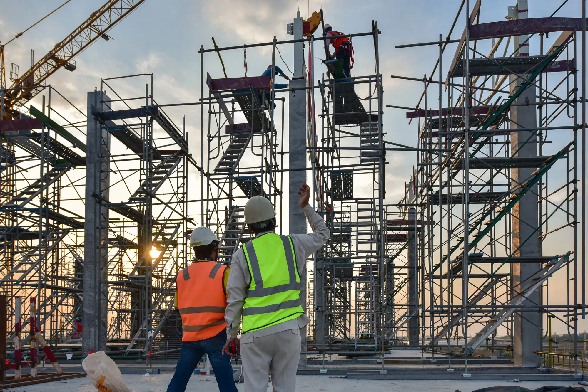 Enforce PPE compliance and monitor fire risk across a large active construction site with rotating crews, multiple subcontractors, and changing site layouts.